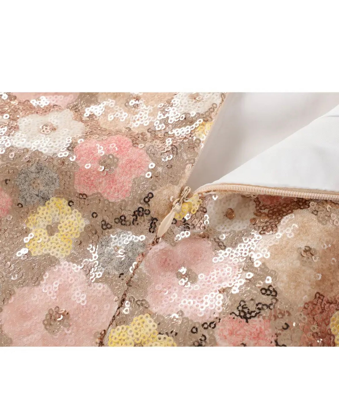 Midi A-Line Floral Sequin Skirt - Dust Pink - size M & L