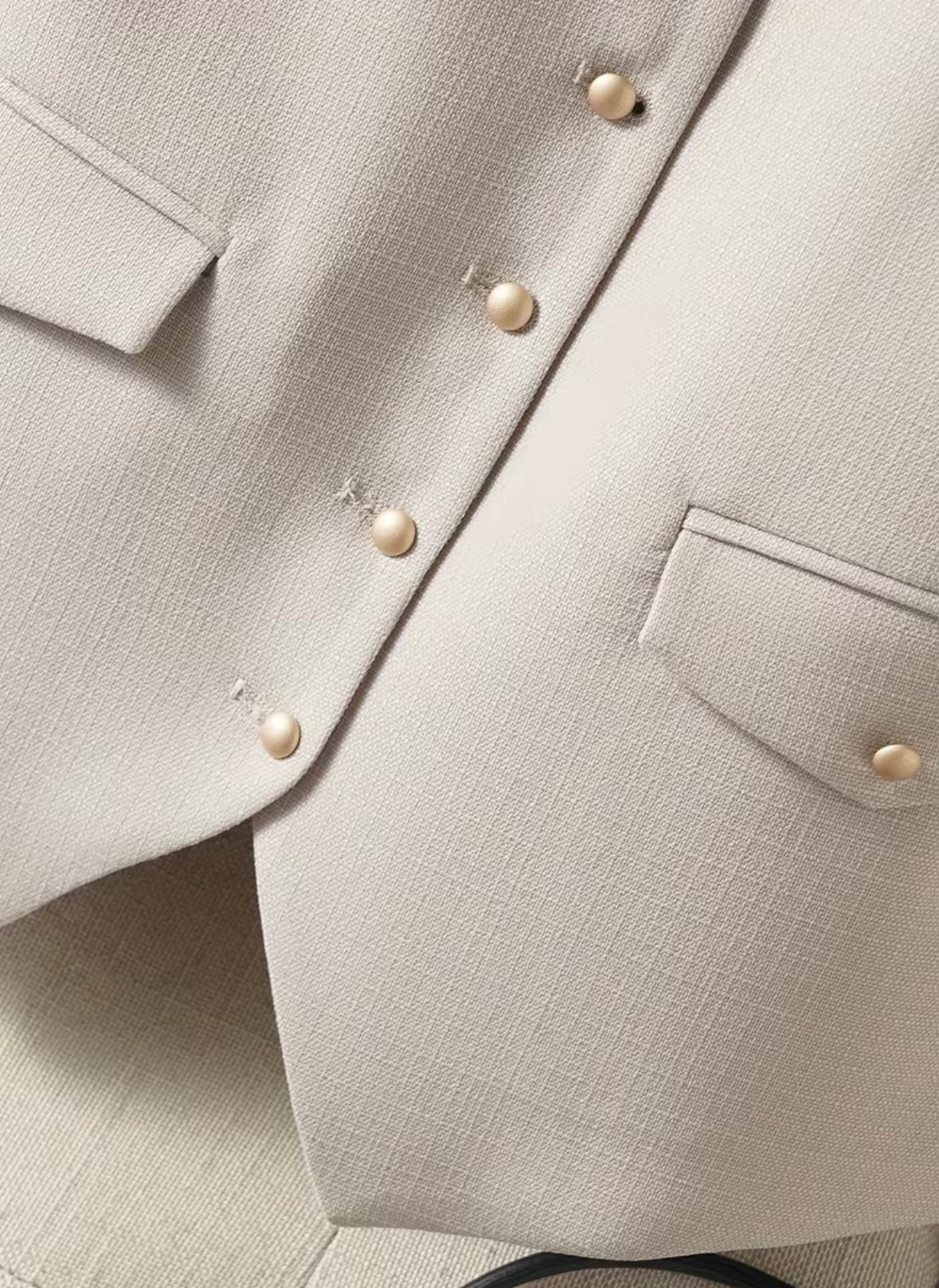 • Details: Regular cut, bust and back seam, lining, functional pockets with flaps, front buttons, waist length, thick fabric